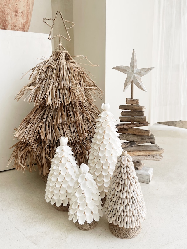 貝の花びらをたくさん散りばめた、クリスマスツリー。 両面が花のモチーフとなっており豪華です。 about 13×13×27cm ATTENTION ✳︎天然の貝殻と天然の貝を使っているので、とても繊細です。 Lサイズは一部破損している部分がございます。 シェルや、ラフィア、フェザーは天然の素材ですので汚れや欠けがあったり、折れていたり、曲がっていたりするものもございます。また、取れやすく壊れやすいので優しく扱うようお願いします。 職人ひとつひとつ手作りですので風合いや仕上がりにムラがございます。 海外製品ですので多少の縫製や接着の粗さがございます。ご理解の上購入くださいませ。