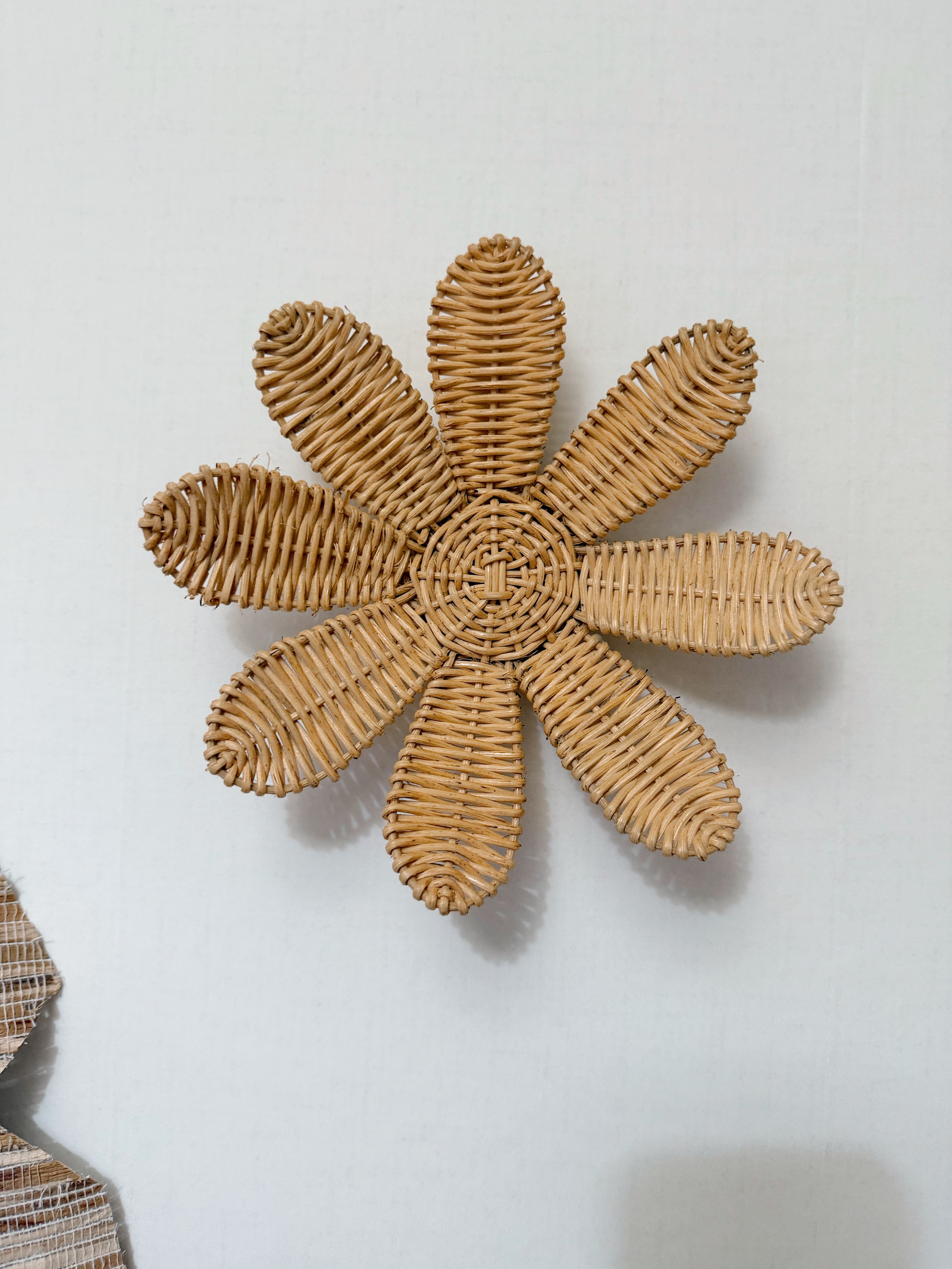 デイジーの形のラタン製ウォールデコ。