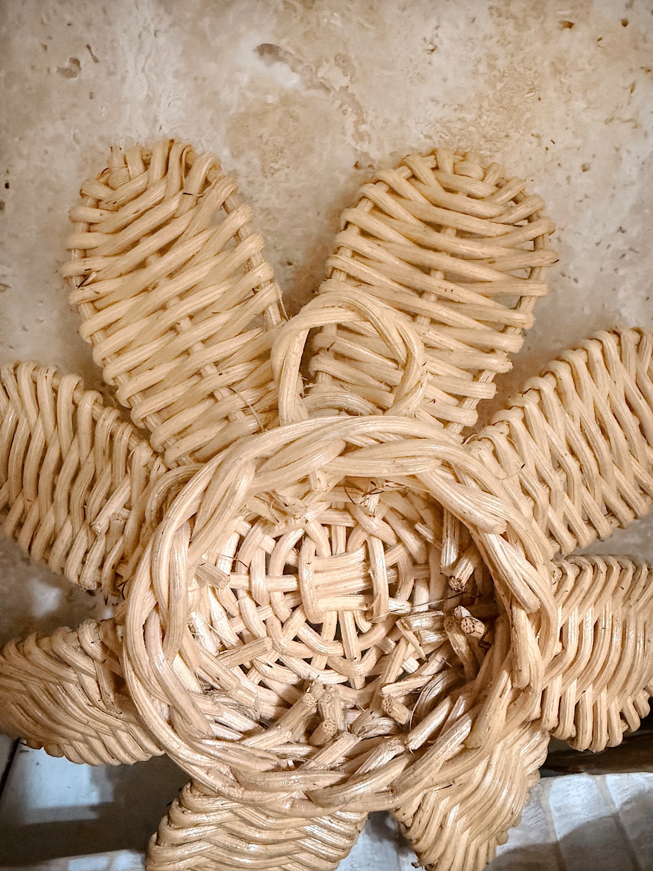 デイジーの形のラタン製ウォールデコ。