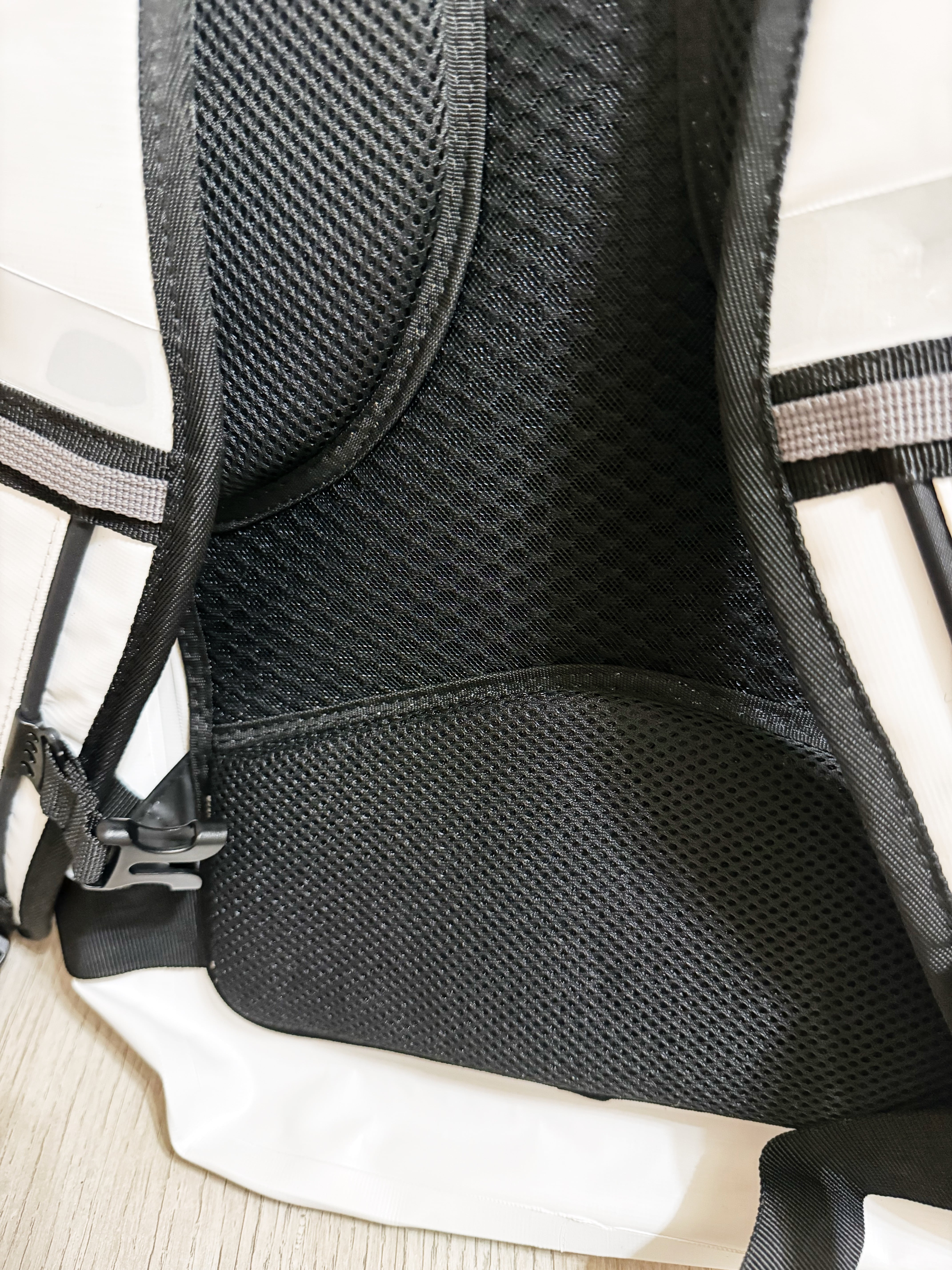 フィンを入れる前ポケットは排水弁がついています。
