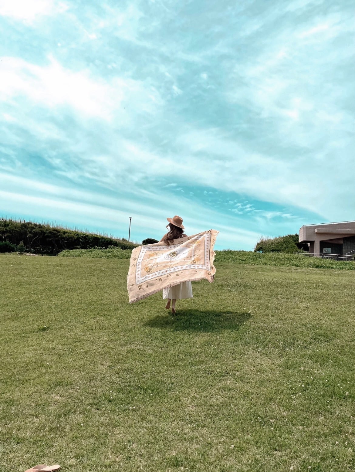 しっかりしたジャカード織で、ポリエステルが入ってるから砂がついてもバッサバサすればほとんど落ちる優れもの。