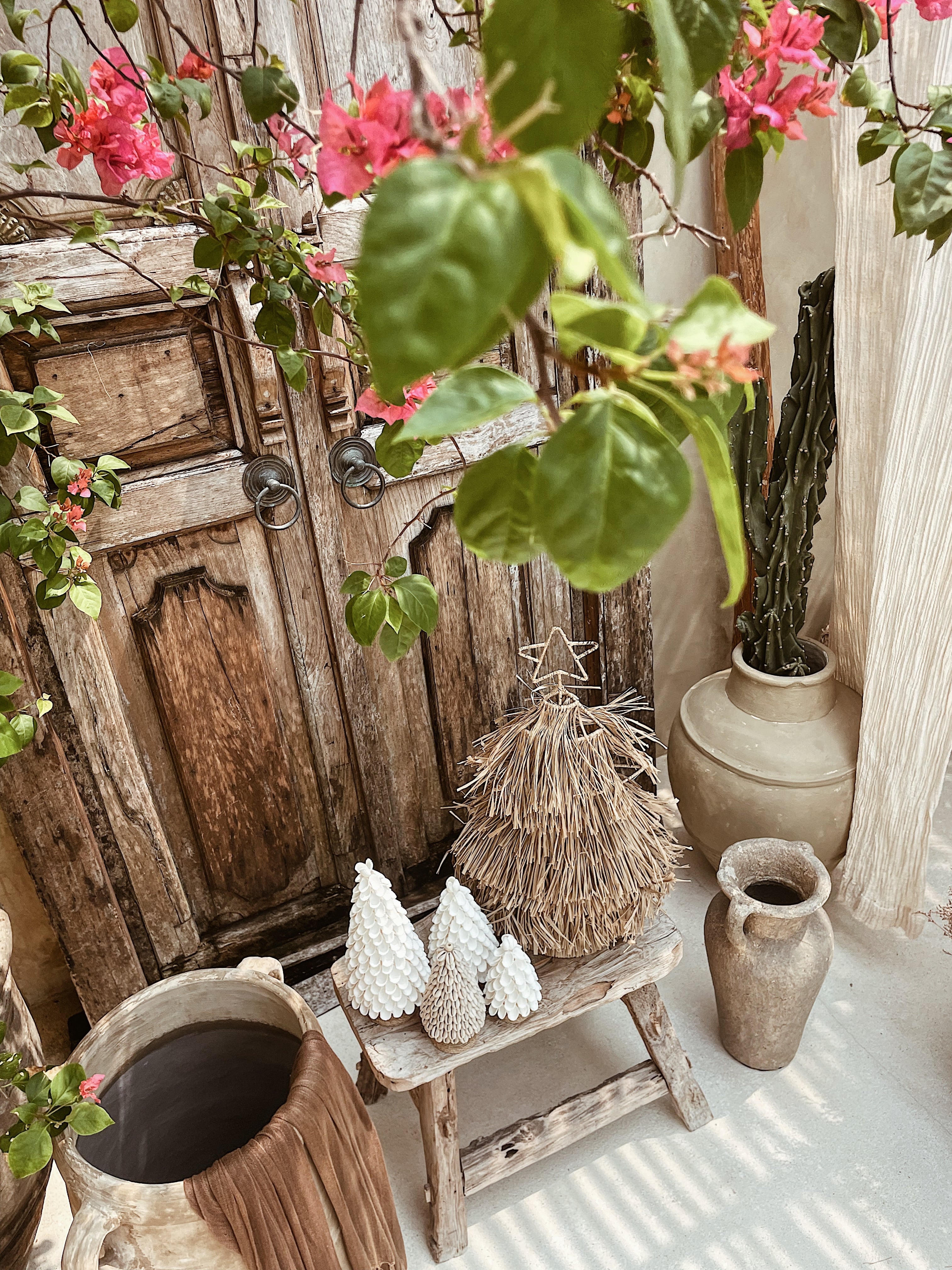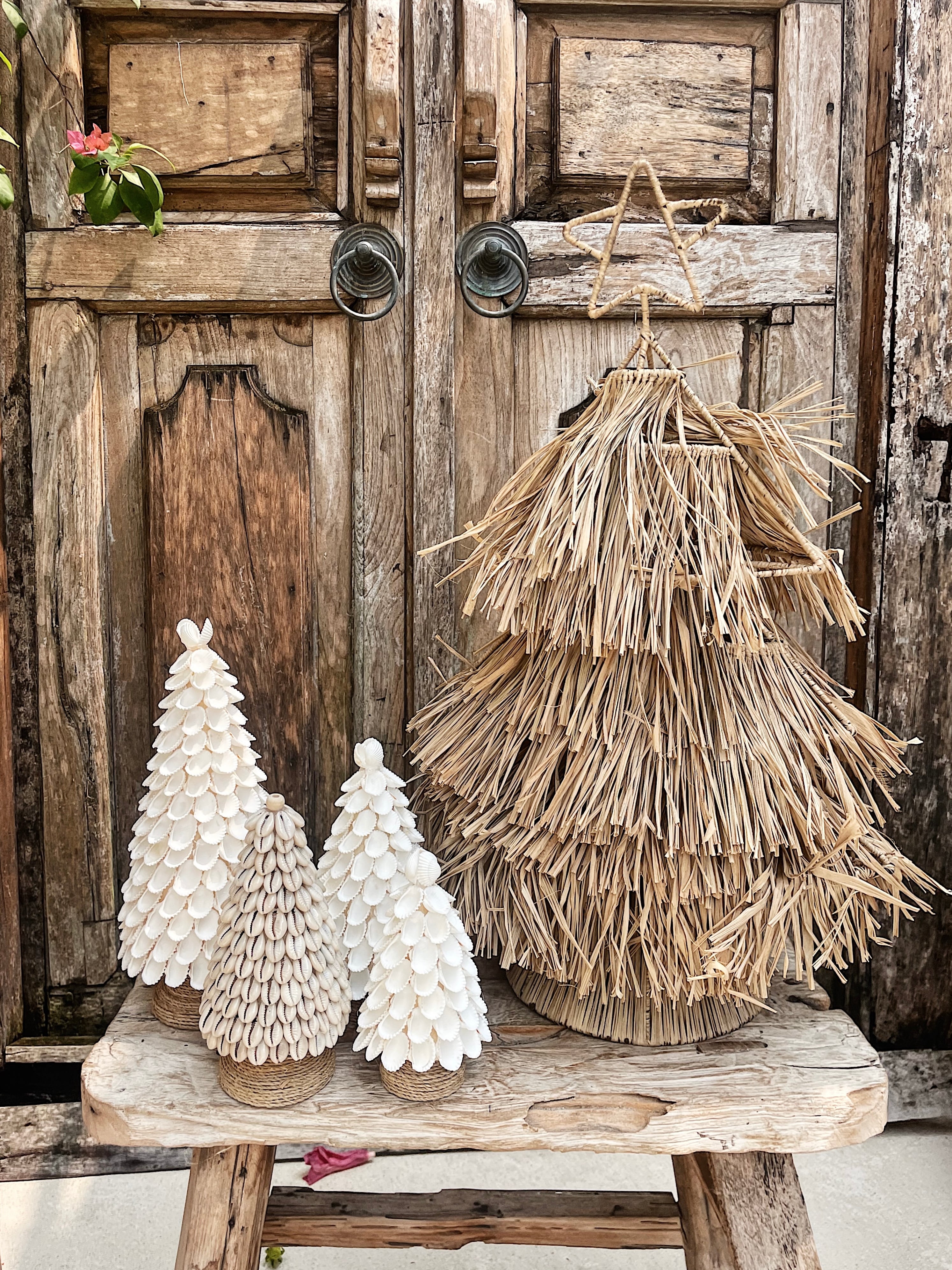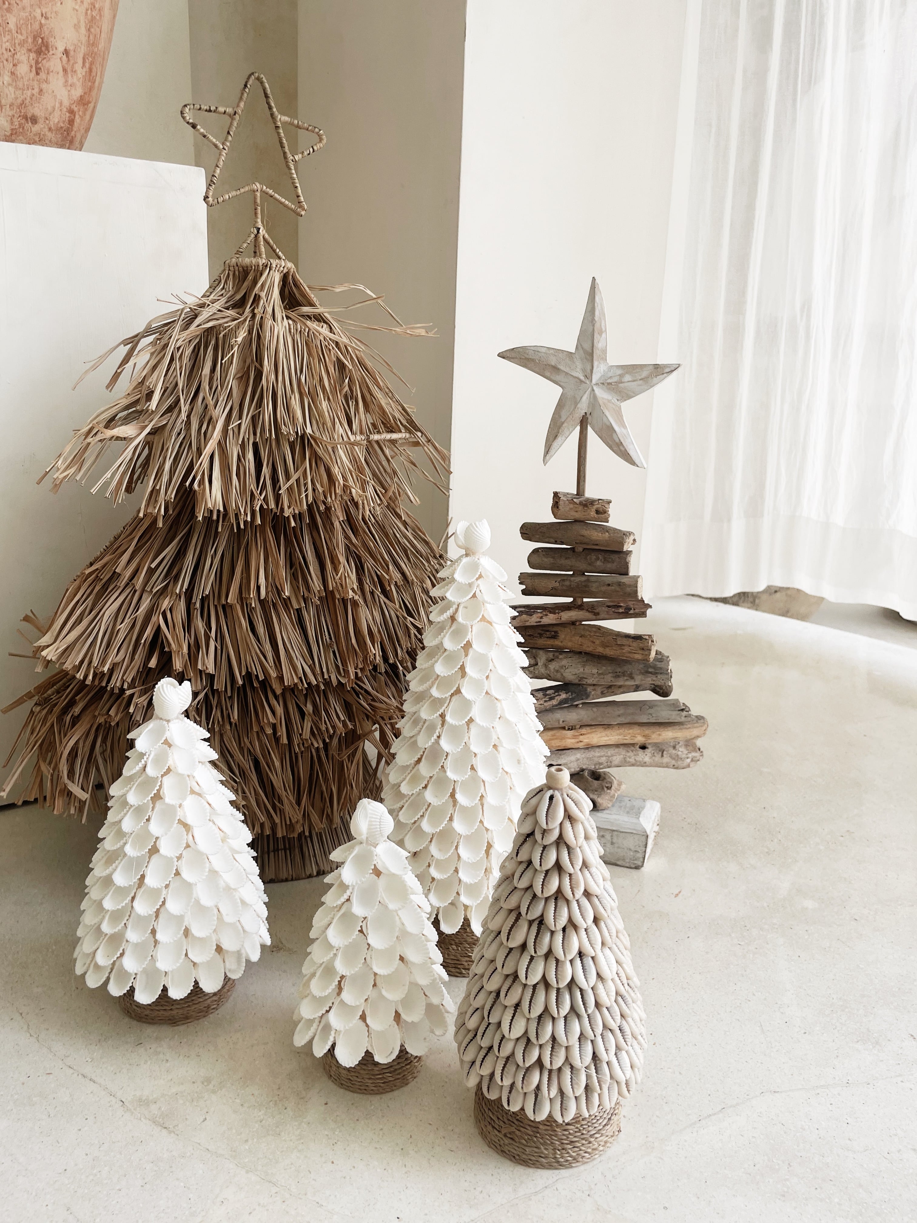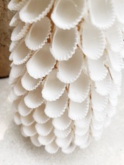 貝の花びらをたくさん散りばめた、クリスマスツリー。